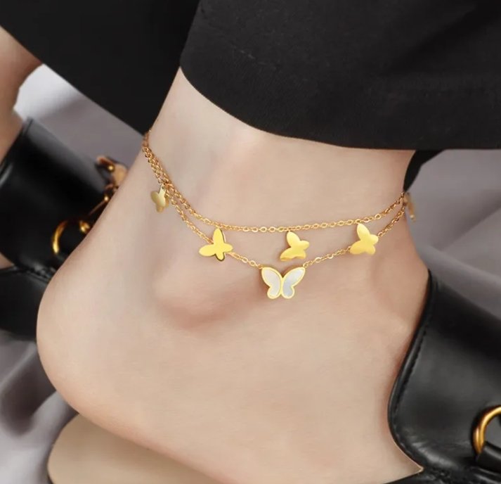 White Shell Butterfly Double Layer Titanium Steel Anklet